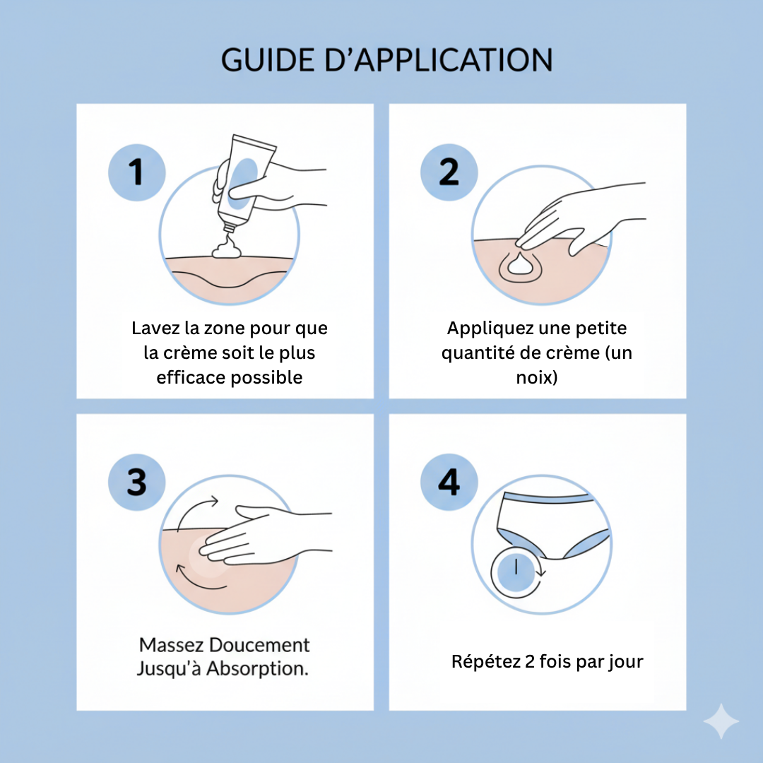 2️⃣ Appliquez une noisette de crème sur la zone affectée et les zones environnantes.