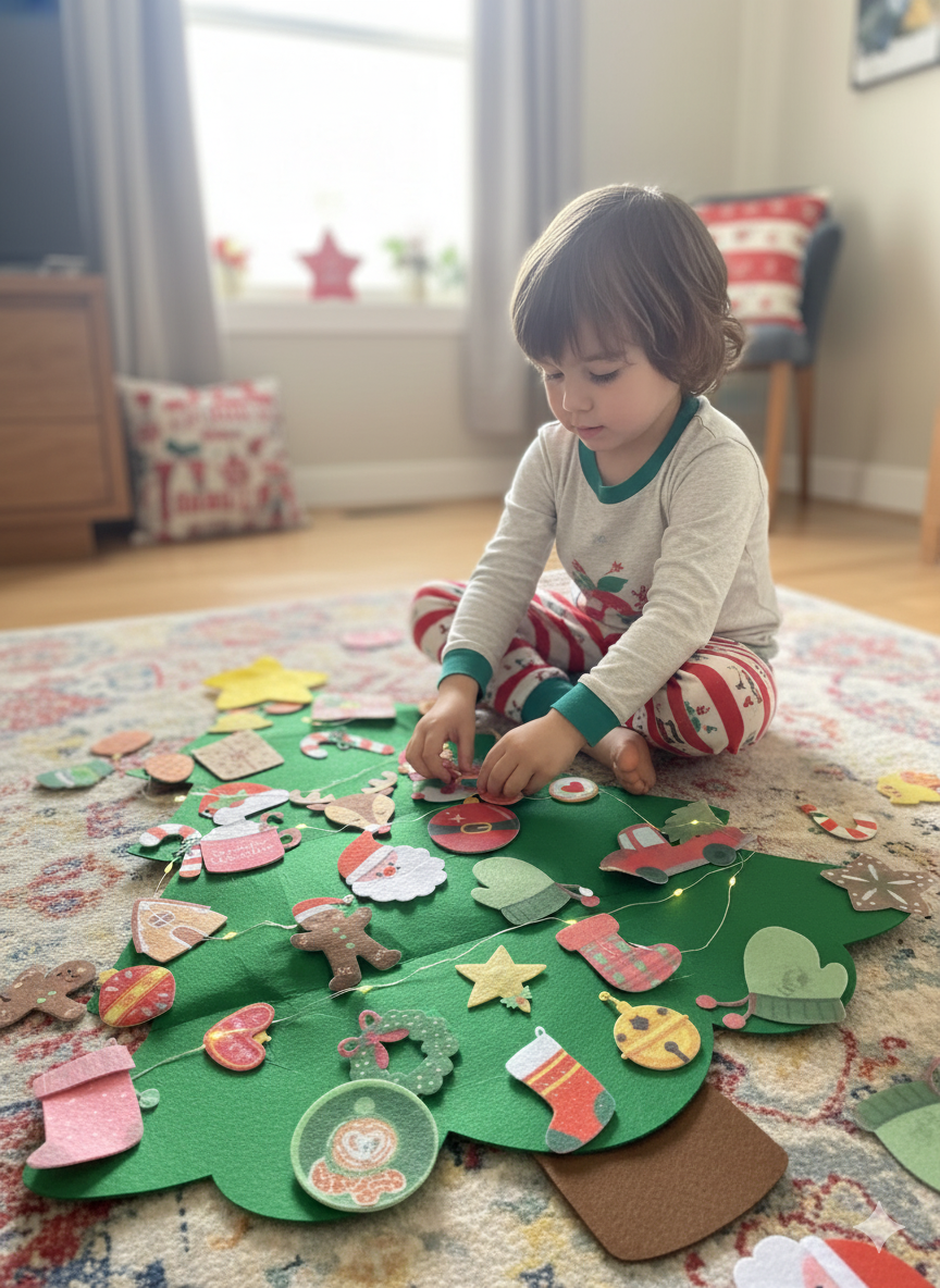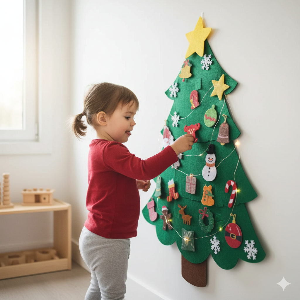 Imaginez accrocher un sapin doux en feutrine au mur, à hauteur de votre enfant.